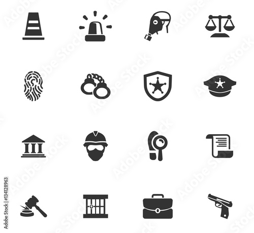 icon, vector, symbol, police, cone, flasher, gas-mask, scale, fingerprint, handcuff, badge, bank, trace, search, document, justice, gaol, portfolio, gun