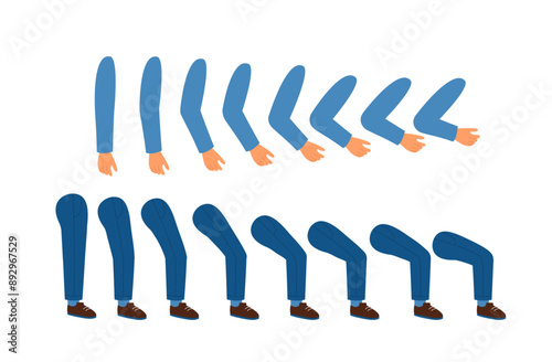 Police officer legs and arms set. Feet and hands. Pack of legs in arms. Design elements for creating animations. Safety and law protection. Sheriff in uniform. Flat vector collection