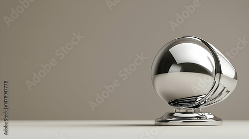 chrome, lamp, polished, reflective, metal, design, minimalist, modern, subtile, curved, round, light, object, three-dimensional, rendering, background, neutral, beige, grey, still, life, art, product, studio, lighting, decorative, elegant, smooth, surface, geometric, form, shape, footed, standing, modernism, contemporary, industrial, simple, sharpened, high, gloss, bright, silver, metallic, tech, abstract, isolated, front