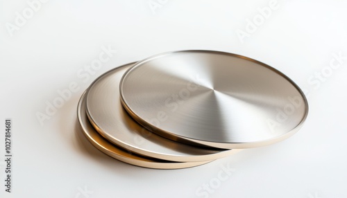 Polished metal with a radial brushed effect, emphasizing a smooth, concentric pattern, ideal for industrial and minimalist design