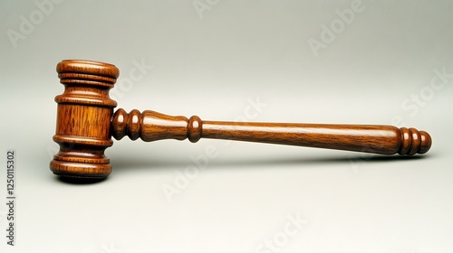 Polished Wooden Gavel Lies on Neutral Background