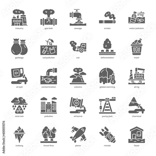 Pollution icon pack for your website design, logo, app, and user interface. Pollution icon glyph design. Vector graphics illustration and editable stroke.