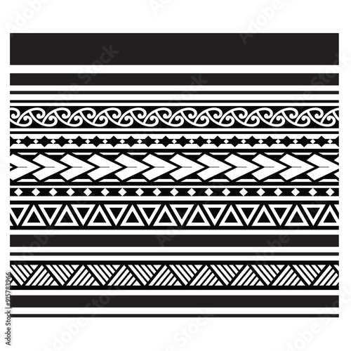 Polynesian tattoo design tribal border. Tribal design ethnic ornament maori band. Samoan Tattoo ribbon sleeve bracelet. Fabric seamless isolated hawaiian armband pattern on white background.