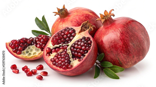 pomegranate, fruit, food, isolated, red, ripe, healthy, white, fresh, sweet, tropical, juicy, vegetarian, diet, freshness, dessert, nature, juice, organic, tasty, half, natural, eating, seed, closeup