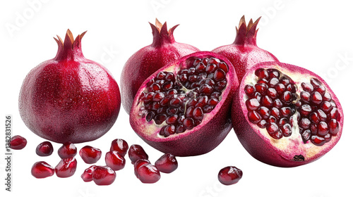 Pomegranate Perfection: Capturing the vibrancy of freshly harvested pomegranates, with some halved to reveal their juicy, jewel-toned seeds. A still-life that celebrates natural beauty.