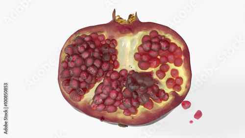 Pomegranate sliced in half, fruit isolated on white background