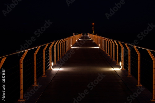 bridge, architecture, space, runner, rail, evening, dark, yellow, water, by night, building, light, heaven, hall, bridge, walk, dream, light, light, spain, beach