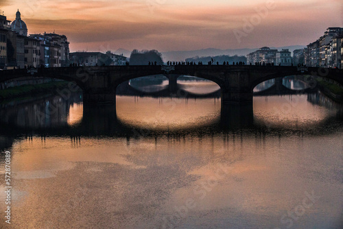 architecture, bridge, connection, destination, dusk, firenze, horizontal, italy, local landmark, no people, outdoors, people, renaissance, river, silhouette, sunset, tuscany