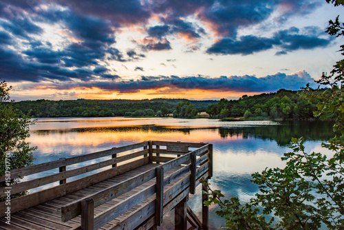 lake, water, heaven, docked, nature, landscape, forest, summer, bridge, boat, blue, river, breakwater, dock, cloud, forest, duck pond, calm, shaft, spring, sunset, park
