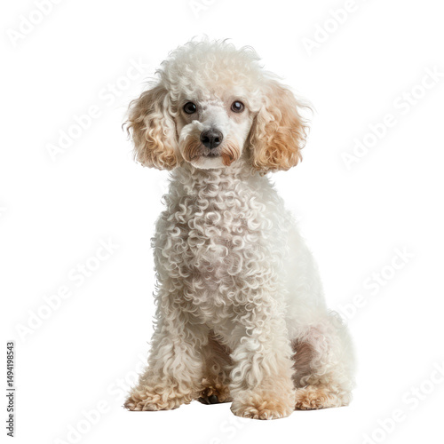 poodle, front, view, dog, canino, pet, breed, elegant, curly, coat, fur, fluffy, standing, sitting, paw, tail, ear, nose, eye, alert, friendly, playful, intelligent, loyal, cute, adorable, full body, isolated, white, background, graceful, medium, athletic, charming, sophisticated