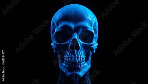 pooky Human Blue Skull on Dark Background for Halloween Horror Concept