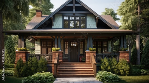 porch, craftsman, house, illustration, bungalow, architecture, swing, roof, cosy, tree, bush, privacy, seclusion, pathway, stone, charme, property, home, design, style, traditional, woodwork, handcraft, historic, window, column, gable, eaves, shingle, landscaping, garden, rustic