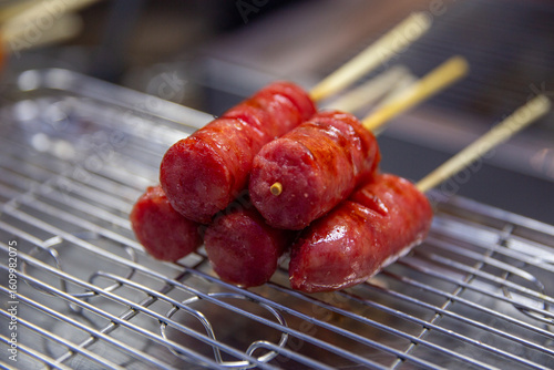 hawker, snack food, sausage, asia, seller, seasoned, hot dog, red, malaysia, flavoured, asian, local, culinary, meat, hand-held, skewer, malay, grilled, flavorful, chinatown, culture, food, pork meat, spicey, cookery, street market, snack, bar-b-q, fresh, sweet