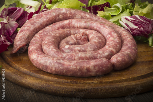 sausage, pork meat, meal, snack, fennel, food, delicious, seed, circle, uncooked, culinary, epicure, traditional, eat, tasty, round, background, nourishment, cooking, tomatoes, spiral, deli, ingredient, fresh, spicey, meat