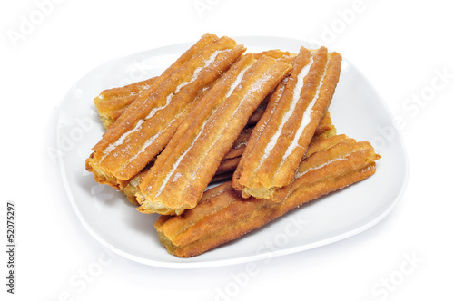 churros, thick, spanish, food, pastry, pastry, sweet, meal, eat, eating, sugar, breakfast, dessert, snack, nourishment, alimentary, bar, plate, dish, fried, fritter, cookery, gastronomy, culinary, typical, traditional, spain, isolated, white, background, delicious, tasty, brown, calorie, fattening, cafeteria, cafes, cafes, fat, horizontal
