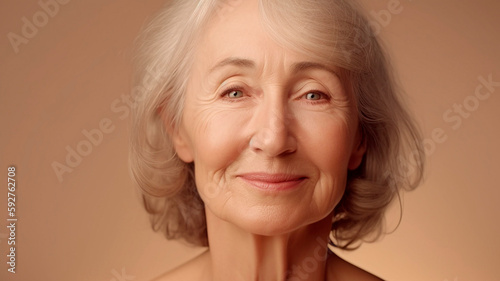 Porrtait of old woman with gray hair, created with Generative AI Technology