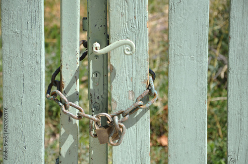 Portail avec chaine et cadenas