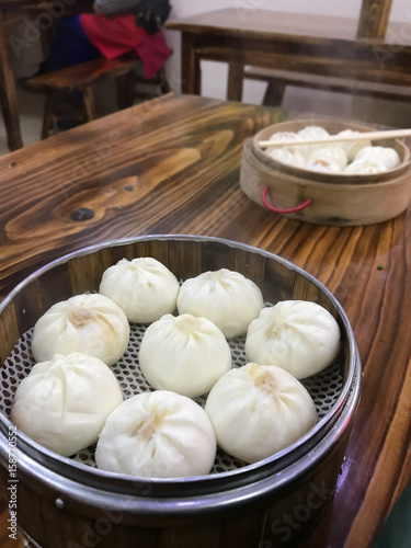 portion of chinese baozi in cheap eatery