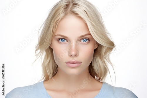 woman, portrait, adult, photo, blue, eye, person, white background, background, realistic, fashion, white, face, blond, photo, human, hair, head, grey, female, image, nose, skin, grey background, blue eye, closeup, contemplation, young adult, copy space, bodycare, coiffure, long hair, head shot, isolated, eyebrow, eyelash, looking, serious, chin, cheek, make-up, forehead, blonde hair, front view, human face