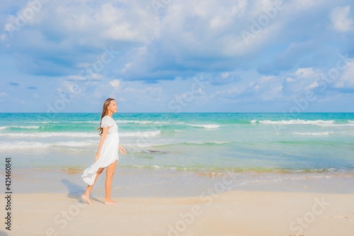 Portrait beautiful young asian woman relax smile leisure around beach sea ocean