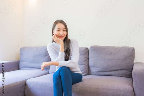 Portrait beautiful young asian woman relax smile on sofa