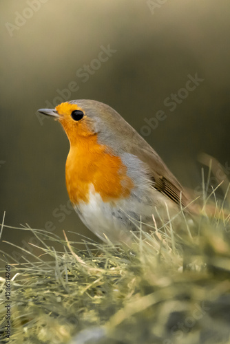 portrait d'un rouge gorge dans l'herbe