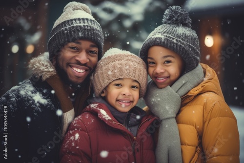 people, portrait, african, american, family, smiling, house, snowfall, winter, outdoors, happy, emotion, togetherness, home, parenting, children, bonding, cold weather, snow, daytime, family life, joy, oneness, seasonal, love, shelter, protection, holiday, front yard, celebration, cheerful, black, inclusion, diversity, equity, warmth, community, winterly, three, lifestyle, copy space