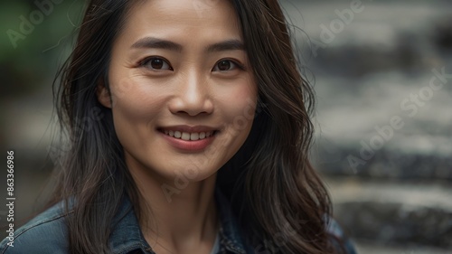 Portrait of a beautiful happy Asian woman over 40 years old.