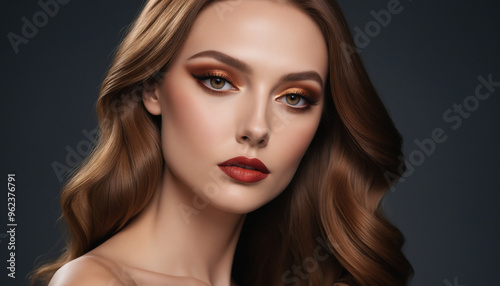 woman, beauty, portrait, hair, make-up, attractive, model, fashion, glam, elegance, sensual, closeup, flawless, trendy, chic, natural, skin, eye, stylish, cosmetic, youth, healthy, glowing, smooth, vibrant, photo, studio, elegant, confident, female, mag, editorial, portraiture, lifestyle, red lipstick, wavy, head shot, honed, radiant, appearance, gorgeous, emotional, captivating, artistry, sophisticated, lovely, charme