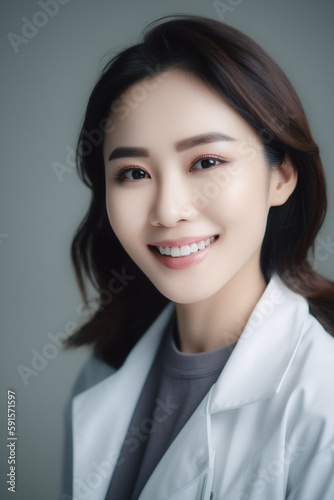 generative, ai, illustration, design, layout, graphic, template, portrait, face, smile, smiling, young, beautiful, attractive, cheering, cheerful, happy, positive, attitude, looking, close, woman, girl, female, adult, photogenic, pretty, cute, asian, eastern, skin, yellow, eye, doctor, medicals, medicine, men at work, practice