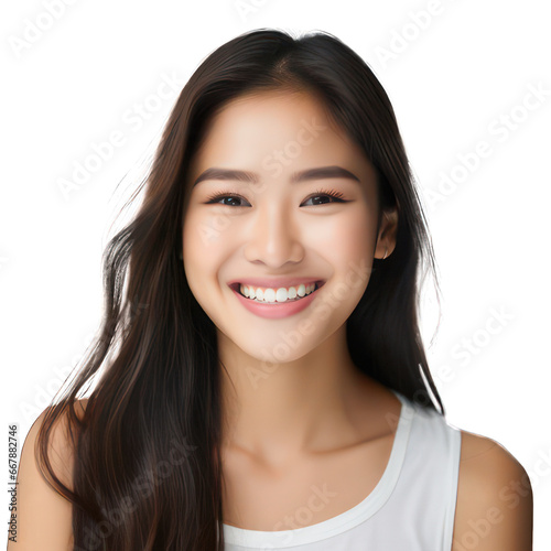 Portrait of a beautiful young asian model woman smiling with clean teeth isolated on white created with Generative AI
