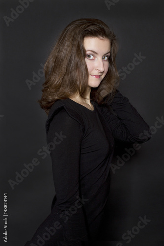 girl, female, young, beautiful, person, people, portrait, black, background, studio, teenage, successful, smiling, happy, happiness, caucasian, white, exterior, face, eye