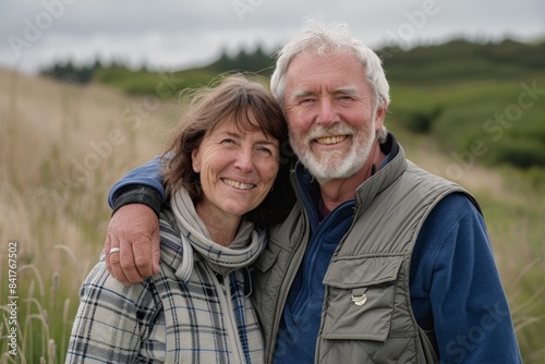 portrait, representation, illustration, blissful, expression, mood, solidarity, relation, renewal, adult, wisdom, contentment, couple, 40s, hiking, mountain, trekking, active, outfit, costume, adventure, cool, sporty, moisture, vest, scenic, agriculture, beauty, nature, country, rural, farm, green, outdoors, countryside, pastoral, rustic, landscape, natural