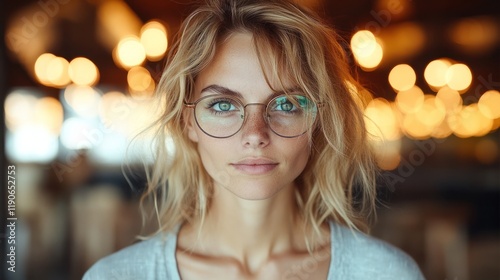 woman, girl, blond, hair, goggles, eyewear, eye, face, portrait, model, beauty, pretty, attractive, fashion, style, female, person, lady, young, adult, casual attire, indoor, light, bokeh, background, expression, confident, serious, look, gaze, sharpened, closeup, head shot, shoulder, skin, smile, mouth, nose, cheek, eyebrow, forehead, temple, ear, neck, clothing, grey, texture, lighting