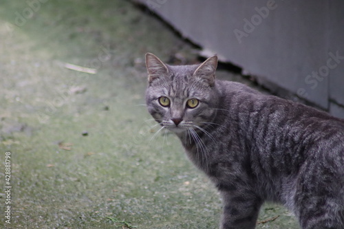 cat, animal, pet, kitten, felino, cute, domestic, fur, grass, nature, cat, pet, green, tabby, eye, portrait, mammal, eye, wild, small, grey, face, whisker, striped