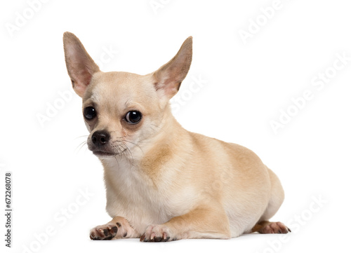 Portrait of a Chihuahua Dog lying down in front, cut out