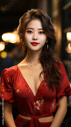 portrait of a chinese woman in red cute dress