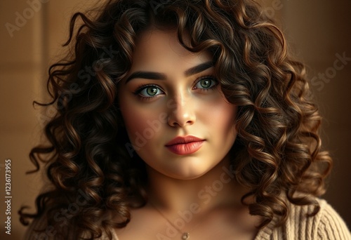 gentle, profile, soft, beautiful, portrait, human, chubby, part, body, portrait, space, green, beauty, long, side, model, sharpened, people, eye, woman, bright, seen, brown, hair, curly, natural, photorealistic, light, expression, warm