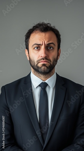 businessman, concerned, portrait, suit, attaching, formal, stress, professional, decision-making, corporate, male, expression, office, executive, thoughtful, anxiety, work, dilemma, leadership, career, manager, adult, entrepreneur, confusion, job, employment, serious, pondering, introspection, uneasy, business, finance, challenge, grey background, determined