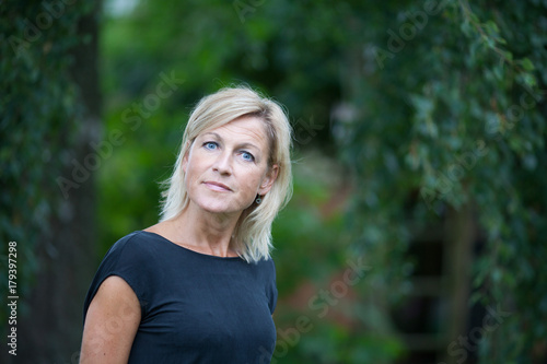 Portrait of a cute blond scandinavian woman shot outdoor