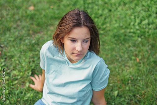 girl, grass, outdoors, public park, people, sitting, children, day, relaxation, togetherness, casual clothes, female, childhood, lifestyle, teenage, adult, avocation, nature, happiness, smiling, enjoyment, friendship, one person, daughter, carefree, innocence, sunlight, brown hair, fun, cheerful, summer, joy, woman, family, real people, young adult, looking, picnic, sunny