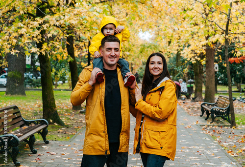 Portrait of a family in an autumn park.