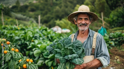 portrait, farmer, holding, freshly, harvested, vegetable, garden, gardening, gardener, agriculture, senior, old, nature, plant, woman, field, farm, outdoors, people, elderly, men at work, vegetable, person, active, summer, working, leaf, tree, hat, fruit