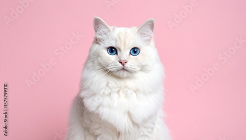 cat, felino, animal, pet, mammal, white, fluffy, fur, blue, eye, portrait, pink, background, domestic, cute, adorable, face, head, whisker, nose, ear, pose, looking, staring, isolated, studio, kitten, breed, ragdoll, purebred, long hair, beauty, beautiful, elegance, elegant, soft, smooth, clean, innocence, innocent, lovely, pretty, glamour, glamourous, posing, calmness, calm, serene, peaceful