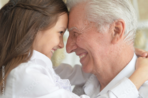 Portrait of a grandfather and granddaughter having fun