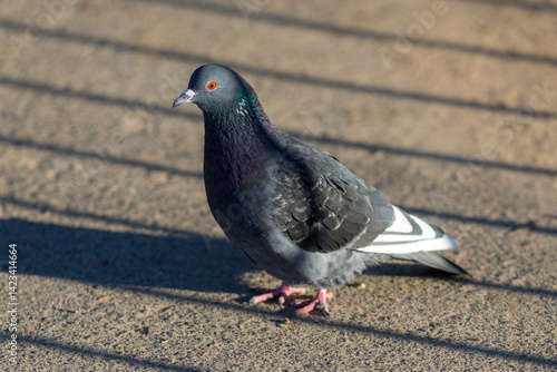 portrait of a grey pigeon on a sunny day