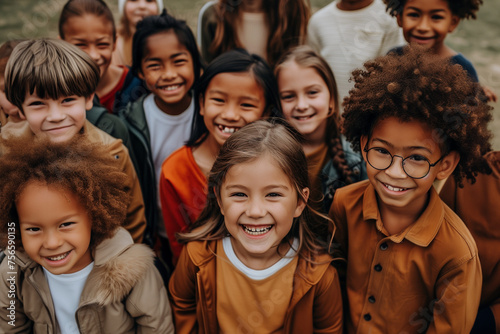 portrait of a group of children smiling, group of young children having fun, group of kindergarden kids outisde playing