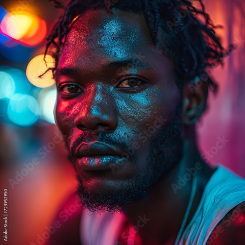 Portrait of a handsome African man with dark skin. Concept: pronounced facial features, illuminated in such a way as to highlight the details and texture of the face