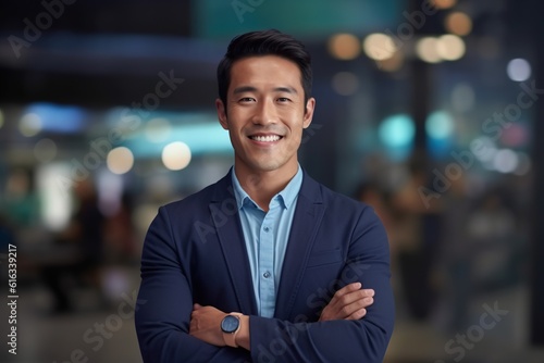 Portrait of a happy asian businessman smiling at the camera.Generative Ai