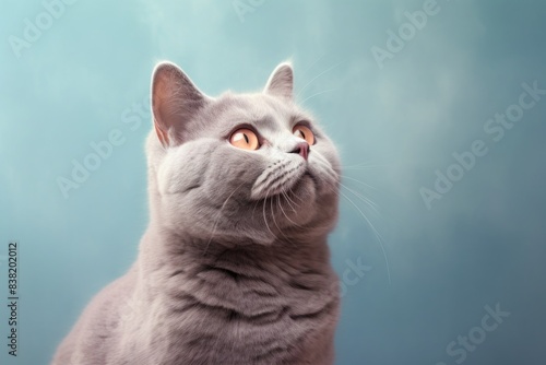 Portrait of a happy chartreux cat isolated in pastel or soft colors background